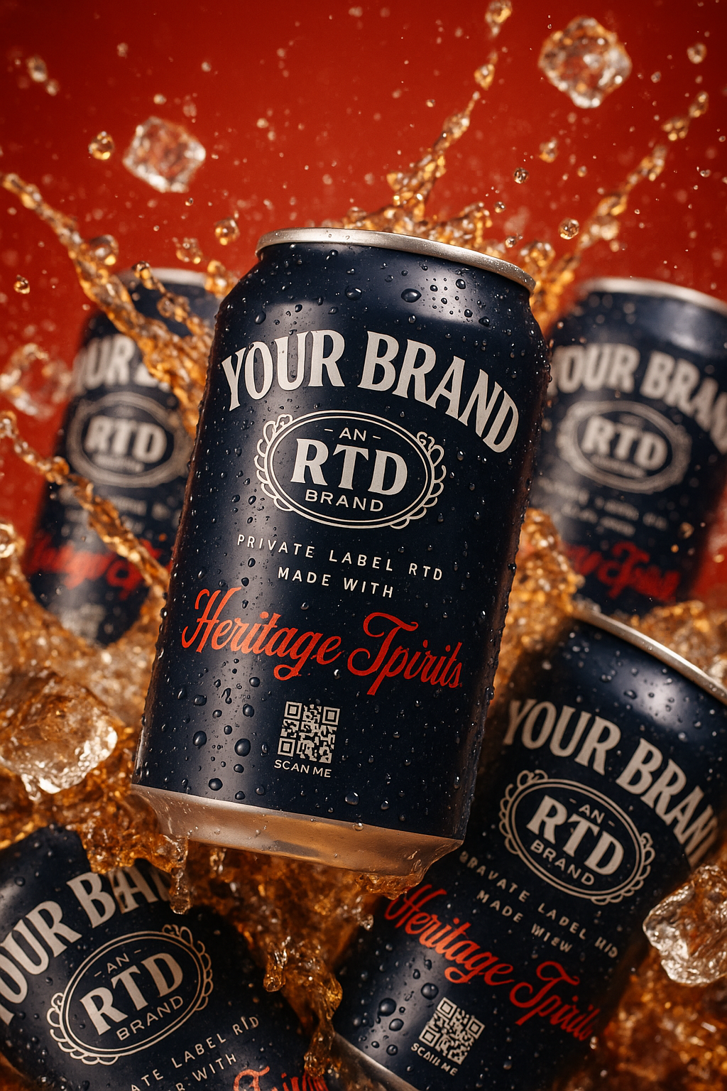 Heritage Spirits is a trusted partner for premium private label RTDs, helping brands bring high-quality, ready-to-drink cocktails to market with ease and speed. Our offerings span a wide range of spirit bases and flavor profiles, from timeless classics to bold, innovative blends. Every RTD we produce is crafted with the same attention to detail and commitment to quality that defines our distillate program—leveraging top-tier ingredients, precise formulation, and scalable production. Whether you’re launching a new concept or expanding an existing lineup, Heritage Spirits provides turnkey solutions tailored to your brand vision. With a focus on consistency, compliance, and great taste, our private label RTDs are designed to stand out on the shelf and deliver a memorable experience in every sip.